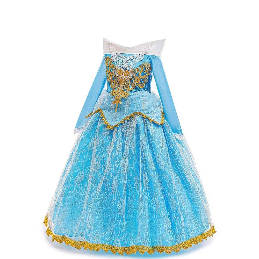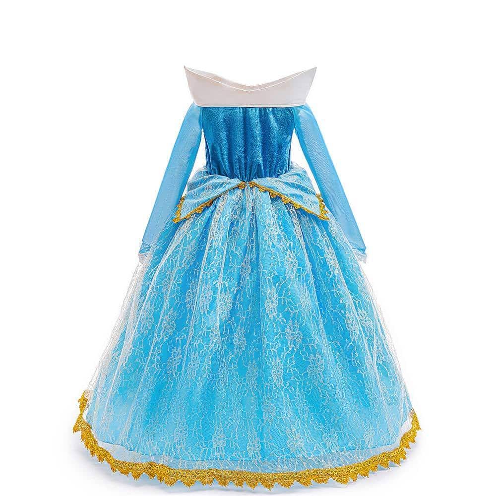 Doornroosje jurk blauw + tiara – toverstaf – handschoenen