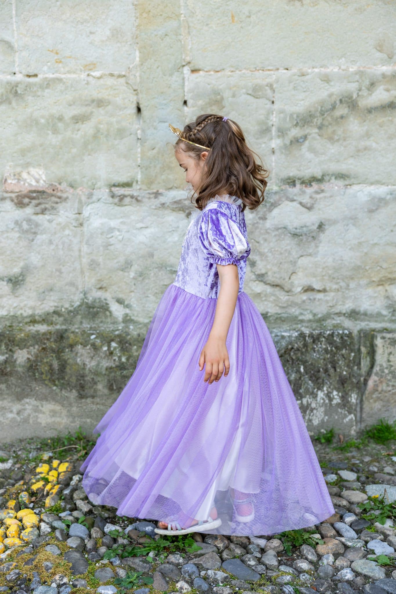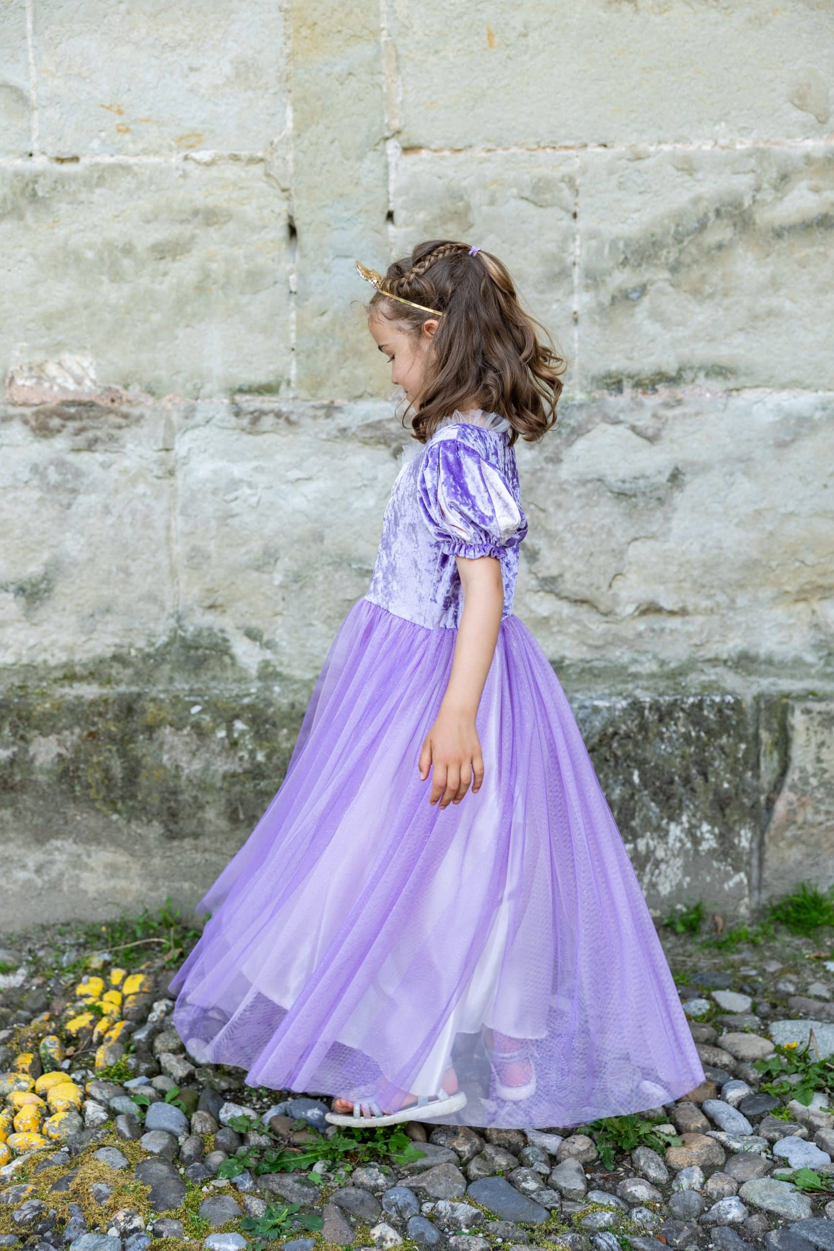 Deze Rapunzel prinsessenjurk is perfect voor meisjes die houden van verkleden en fantasierijk spelen. De paarse tinten, zachte stoffen en sierlijke rok maken de jurk ideaal voor feestjes, verkleedmomenten en magische avonturen. Verkrijgbaar in maat 3–4 jaar, 5–6 jaar en 7–8 jaar.