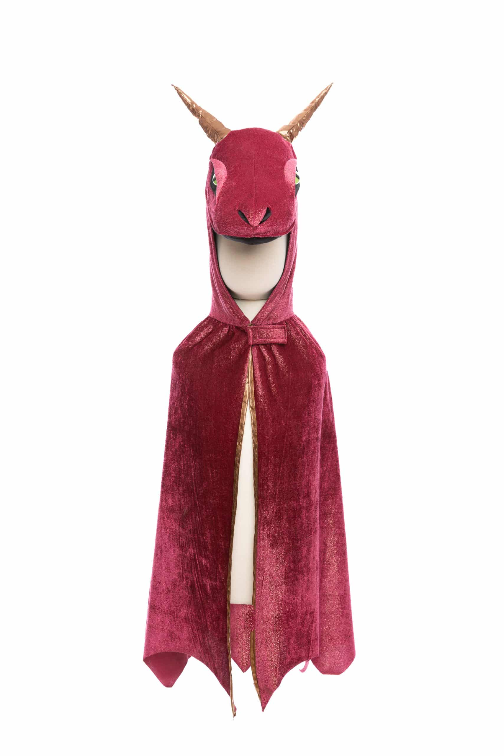 Deze vurige rode metallic drakencape van Great Pretenders is een echte blikvanger. Gemaakt van glanzend materiaal dat schittert in het licht. De 3D-drakenkop met felrode ogen en opvallende hoorns maakt de look compleet.