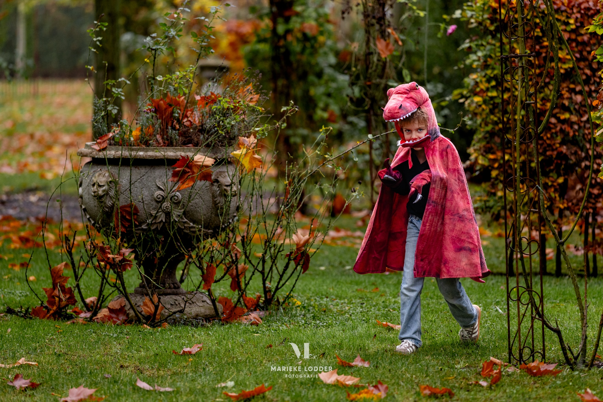 Deze zwart-rode cape maakt van elk avontuur een dino-spektakel.