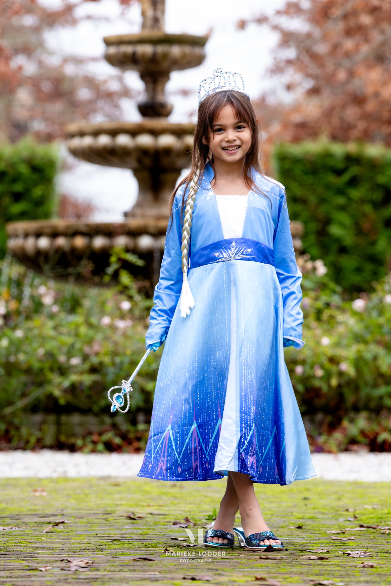 Prachtige prinsessenjurk voor kinderen in de vorm van Elsa jurk uit de film Frozen 2.